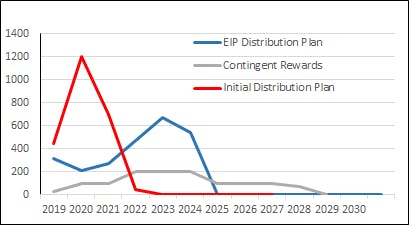 In the chart, we show how the initial distribution to Early Backers / Relay Nodes group would have resulted in a significant spike in supply between 2020 and 2021, while the market was immature. EIP-11252019AF was proposed by the Early Backers / Relay Node community as a solution to this problem and the vote on this passed, bringing our current distribution plan into effect. The distribution of Contingent Rewards to Super Staking Participants and to Early Backer / Relay Node Runners affected by EIP-11252019AF was part of the same process of economic reform.