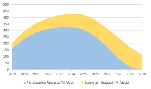 Consistent with the reduced rate of supply distribution implemented in 2020 through a reduction of the rate of participation rewards and of Early Backer / Relay Node rewards, we have extended the distribution of the fixed and immutable total supply of 10bn Algo from 4 to 10 years from now, ending in 2030, rather than in 2024 as initially planned.